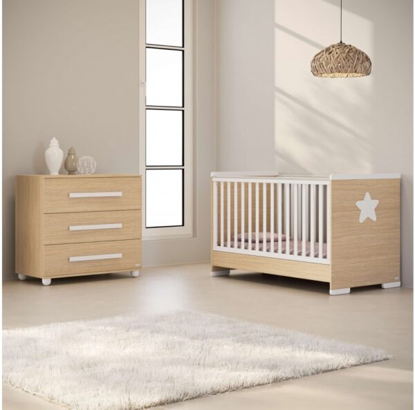 Σετ δωματίου Κρεβάτι προεφηβικό και συρταριέρα Casababy Oslo Set λευκό φυσικό