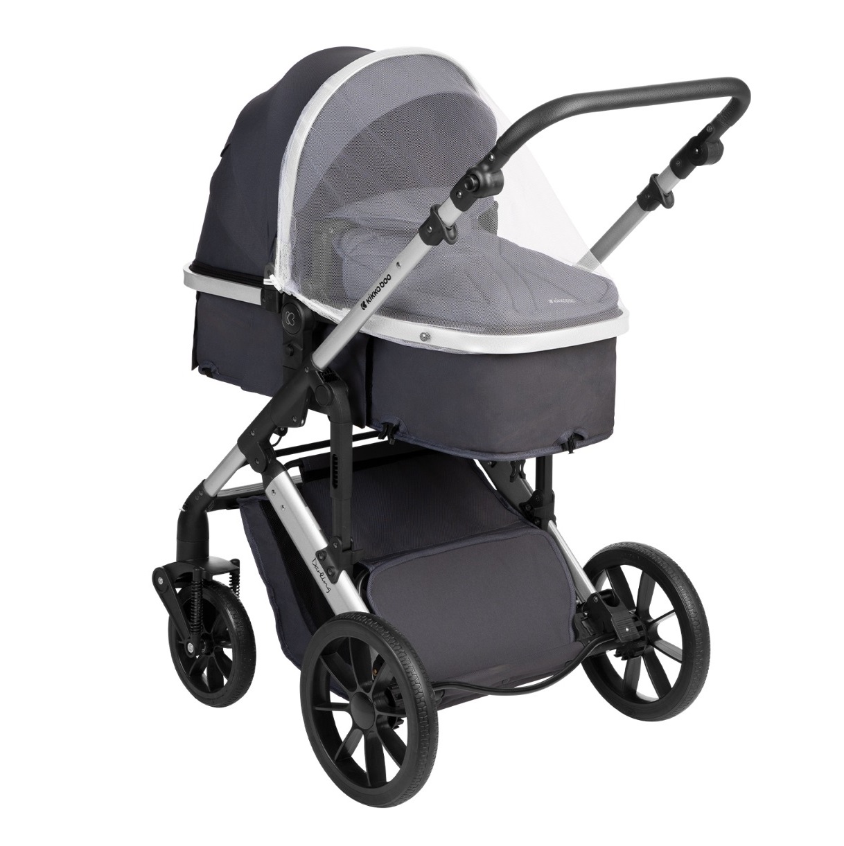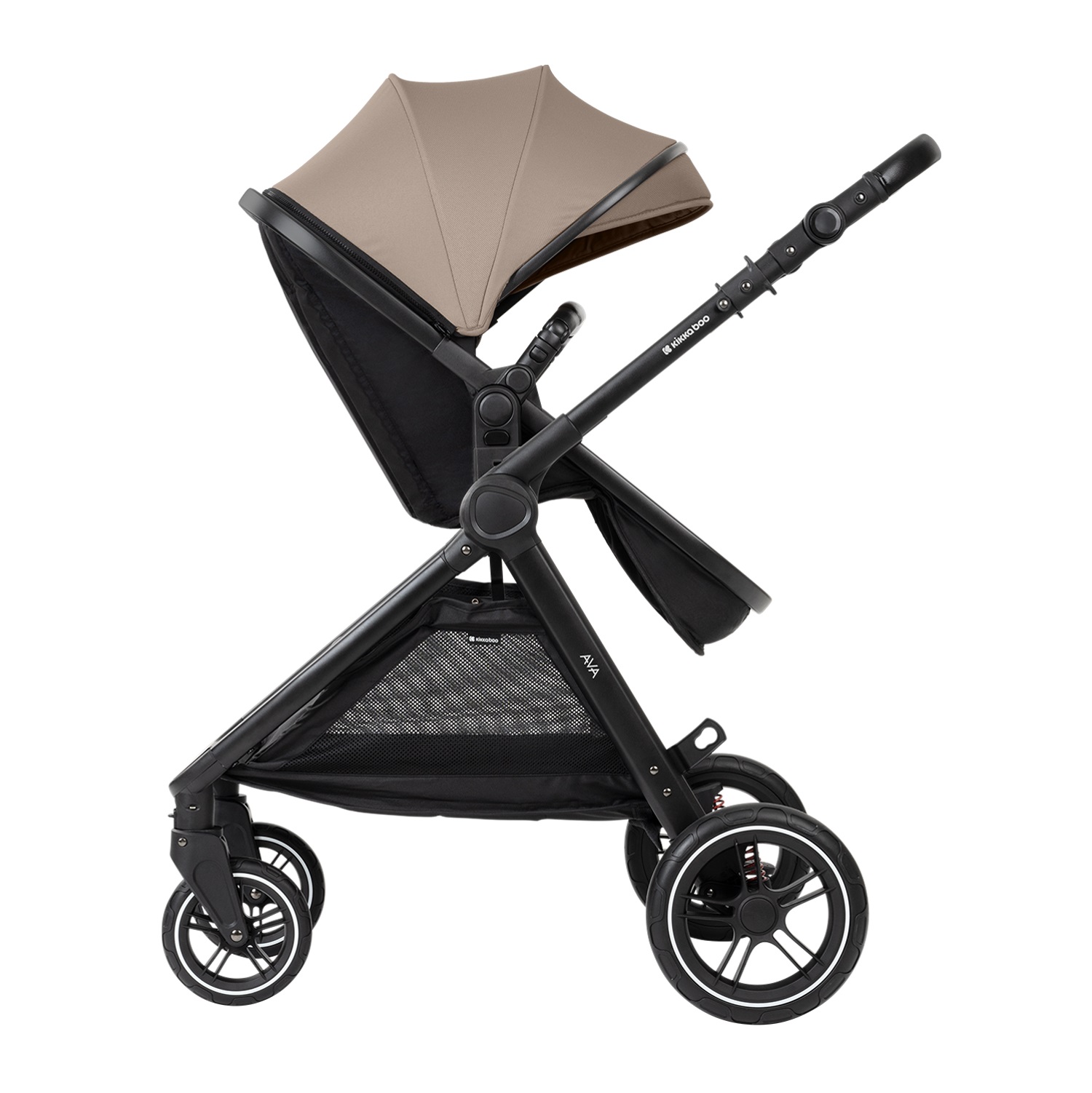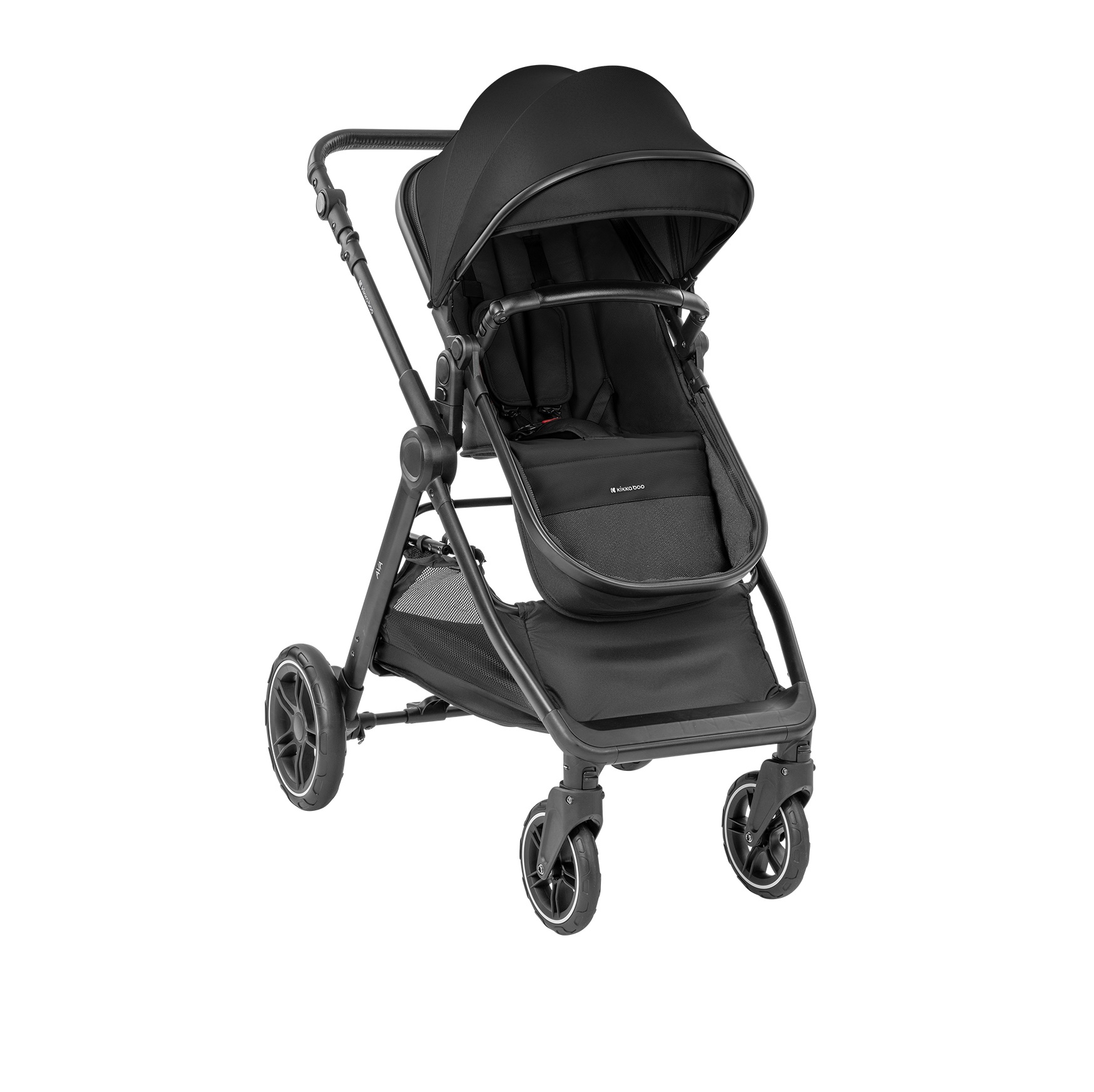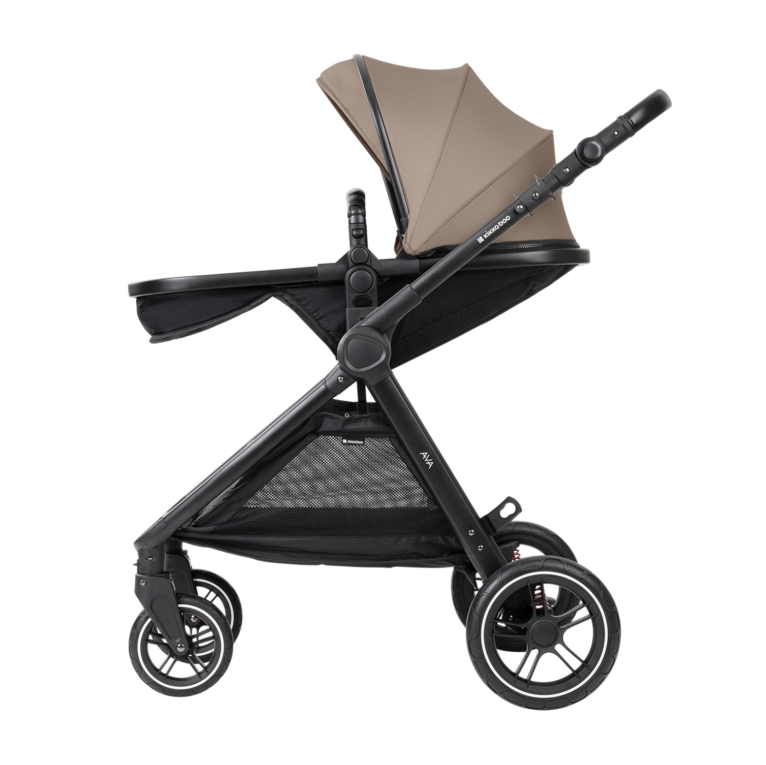 Το καρότσι είναι χτισμένο σε ένα ελαφρύ και αναδιπλούμενο πλαίσιο αλουμινίου με εξαιρετικά συμπαγή τρόπο. Το προϊόν είναι εξοπλισμένο με ένα καλάθι αγορών μεγάλου μεγέθους για να μπορείτε να αντεπεξέλθετε στην πληθώρα των ειδών που χρειάζεστε όταν φεύγετε από το σπίτι με ένα νεογέννητο. Οι μεγάλες ζάντες αλουμινίου PU είναι τέλειες επειδή κάνουν πολύ εύκολη τη διέλευση από τα κράσπεδα και τα χτυπήματα και το υλικό εγγυάται μακροχρόνια χρήση. Οι τροχοί έχουν ενσωματωμένο μηχανισμό απορρόφησης κραδασμών και οι μπροστινοί περιστρέφονται 360 μοίρες, ιδιότητες που μετατρέπουν το προϊόν στο τέλειο καρότσι για κάθε τύπο εδάφους. Το σύστημα αναδίπλωσης είναι εξαιρετικά απλό στη χρήση, το καρότσι μπορεί να διπλωθεί με το ένα χέρι – ένα εξαιρετικό χαρακτηριστικό όταν είστε πάντα με το μωρό στην αγκαλιά σας.