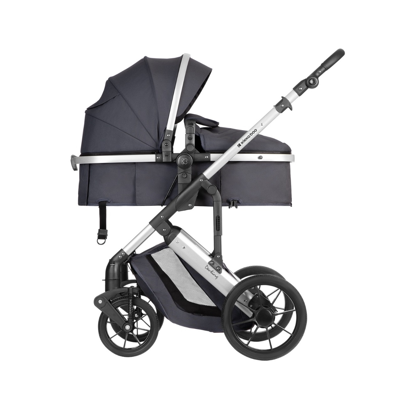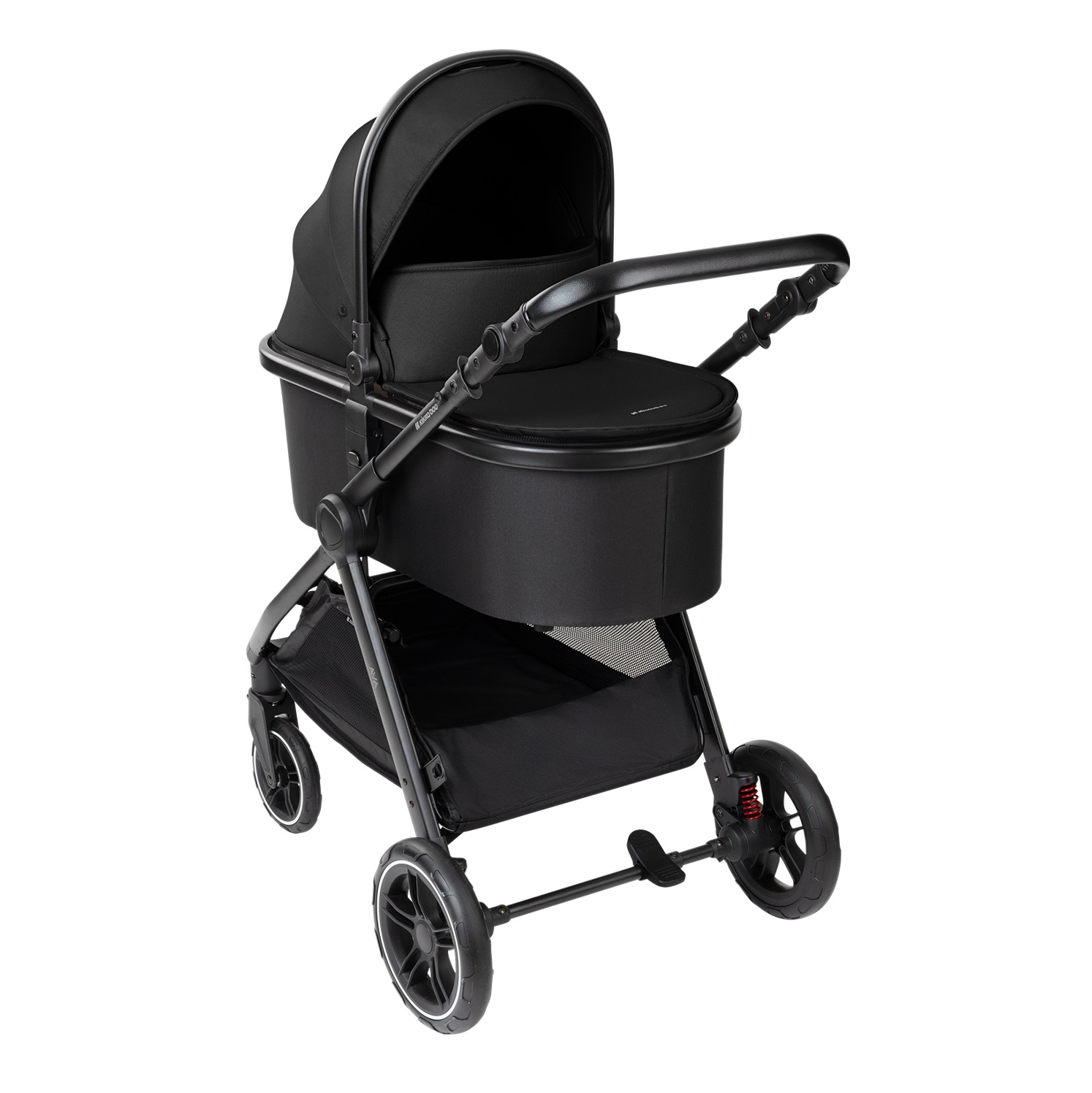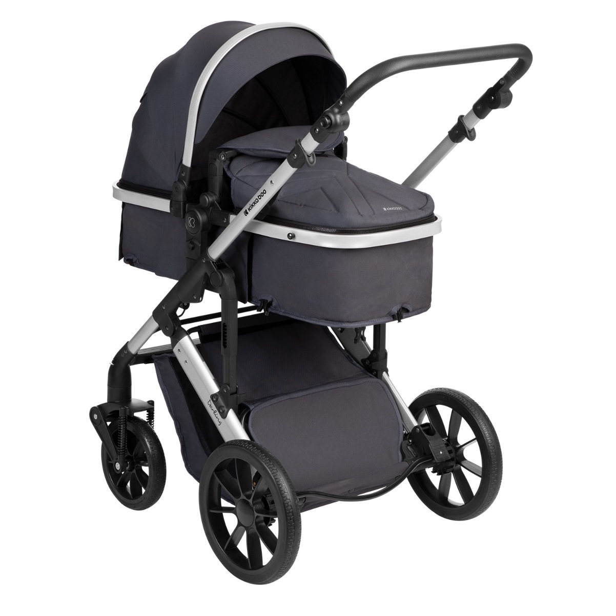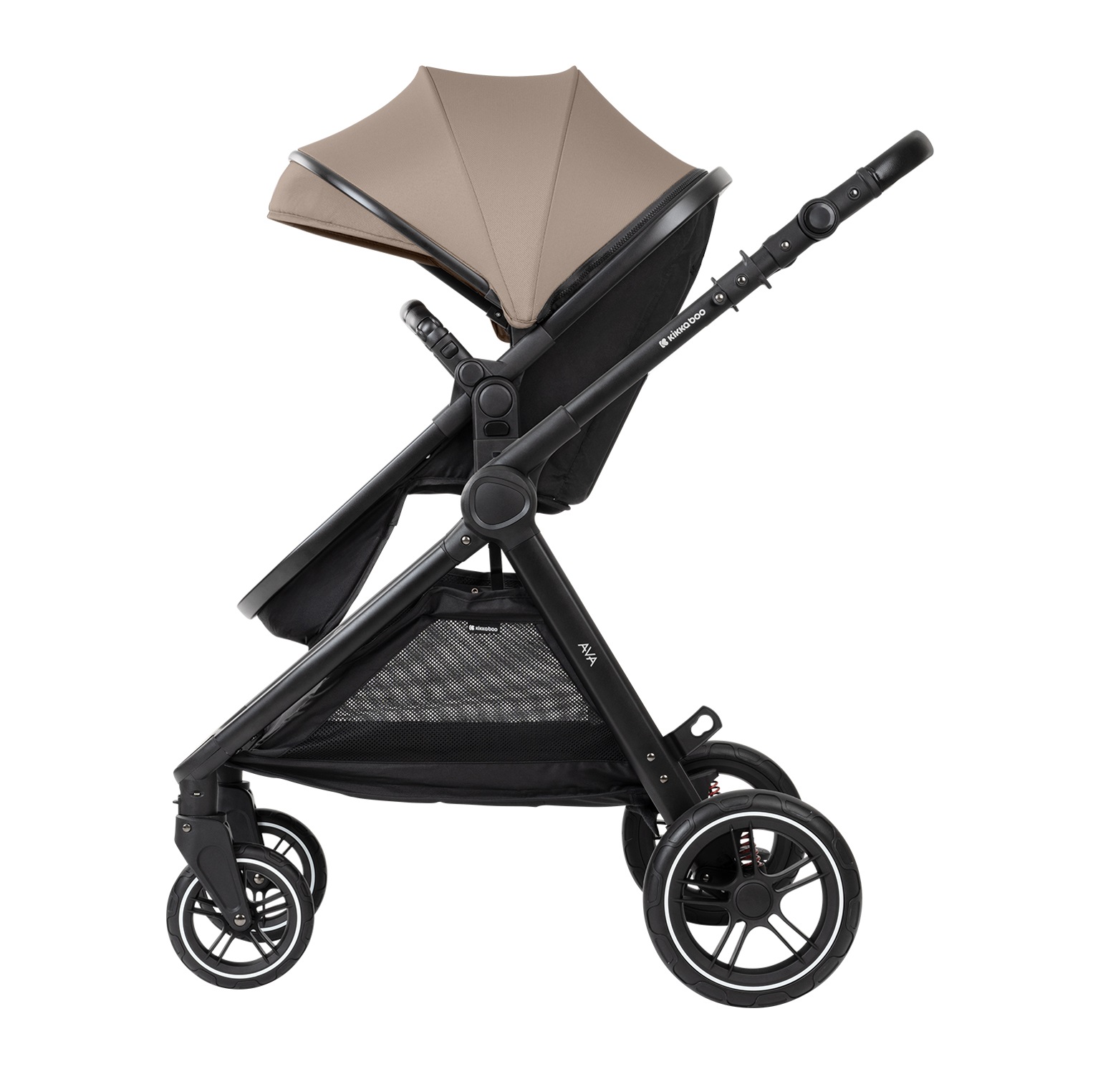 Το καρότσι είναι χτισμένο σε ένα ελαφρύ και αναδιπλούμενο πλαίσιο αλουμινίου με εξαιρετικά συμπαγή τρόπο. Το προϊόν είναι εξοπλισμένο με ένα καλάθι αγορών μεγάλου μεγέθους για να μπορείτε να αντεπεξέλθετε στην πληθώρα των ειδών που χρειάζεστε όταν φεύγετε από το σπίτι με ένα νεογέννητο. Οι μεγάλες ζάντες αλουμινίου PU είναι τέλειες επειδή κάνουν πολύ εύκολη τη διέλευση από τα κράσπεδα και τα χτυπήματα και το υλικό εγγυάται μακροχρόνια χρήση. Οι τροχοί έχουν ενσωματωμένο μηχανισμό απορρόφησης κραδασμών και οι μπροστινοί περιστρέφονται 360 μοίρες, ιδιότητες που μετατρέπουν το προϊόν στο τέλειο καρότσι για κάθε τύπο εδάφους. Το σύστημα αναδίπλωσης είναι εξαιρετικά απλό στη χρήση, το καρότσι μπορεί να διπλωθεί με το ένα χέρι – ένα εξαιρετικό χαρακτηριστικό όταν είστε πάντα με το μωρό στην αγκαλιά σας.