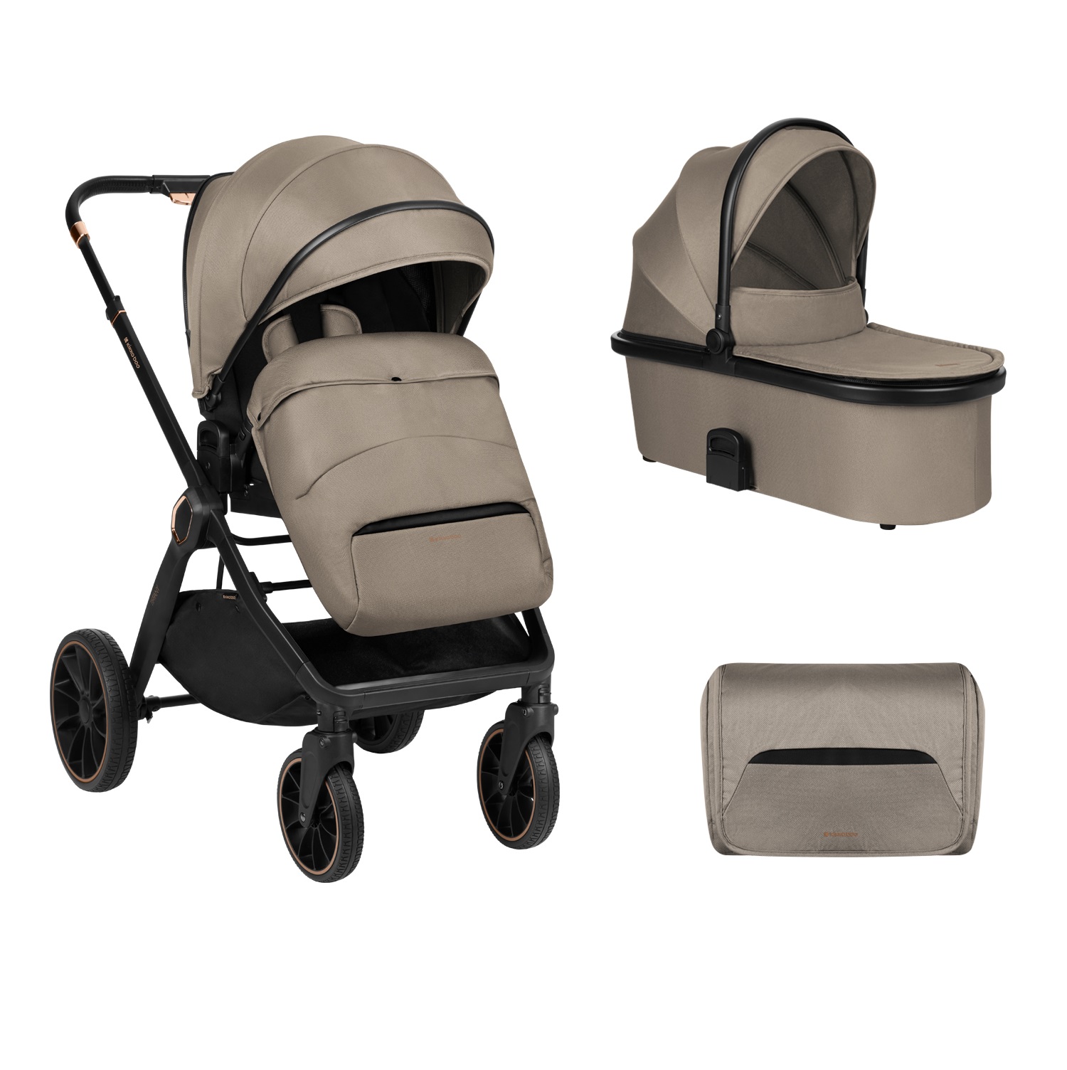 Τα χρωματικά σε ουδέτερα χρώματα είναι φτιαγμένα σε μερικά εξαιρετικά υφάσματα και υλικά που όχι μόνο εξασφαλίζουν μια επιτυχημένη αισθητική, αλλά συμβάλλουν στην άνεση του μικρού και στην ευχαρίστηση της χρήσης των γονιών. Διπλή επένδυση, επεκτεινόμενα μέρη και ενσωματωμένες τσέπες εξασφαλίζουν ευελιξία για ενήλικες. Επιπλέον, οι μικρές οικολογικές δερμάτινες πινελιές κάνουν αυτό το αρθρωτό σύστημα μια αξέχαστη εμφάνιση.